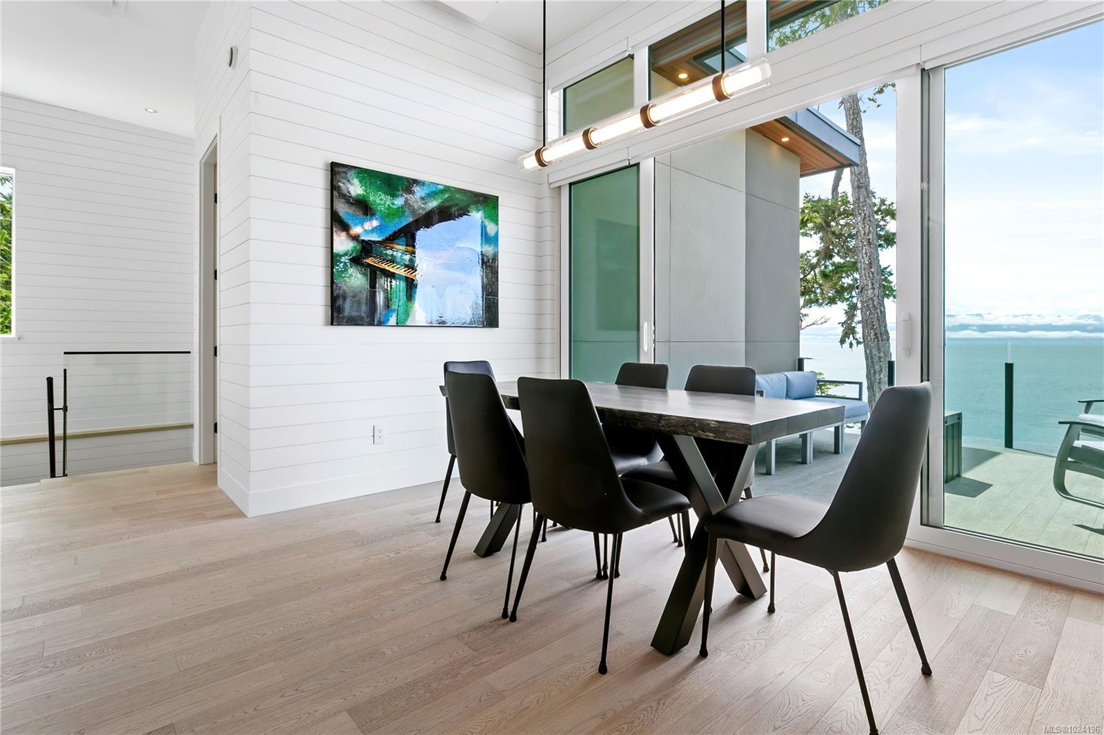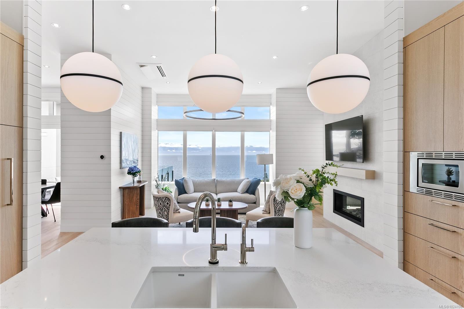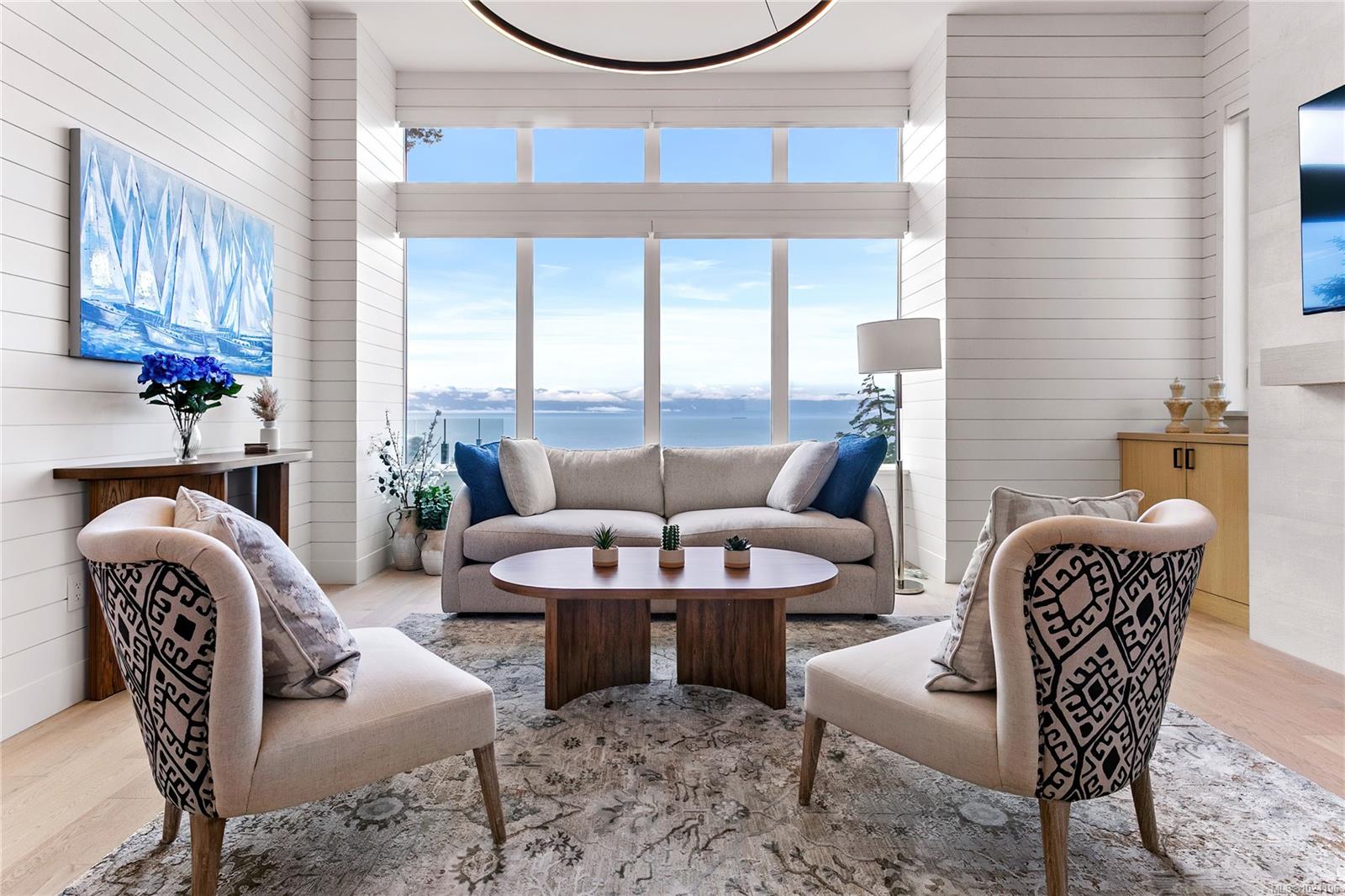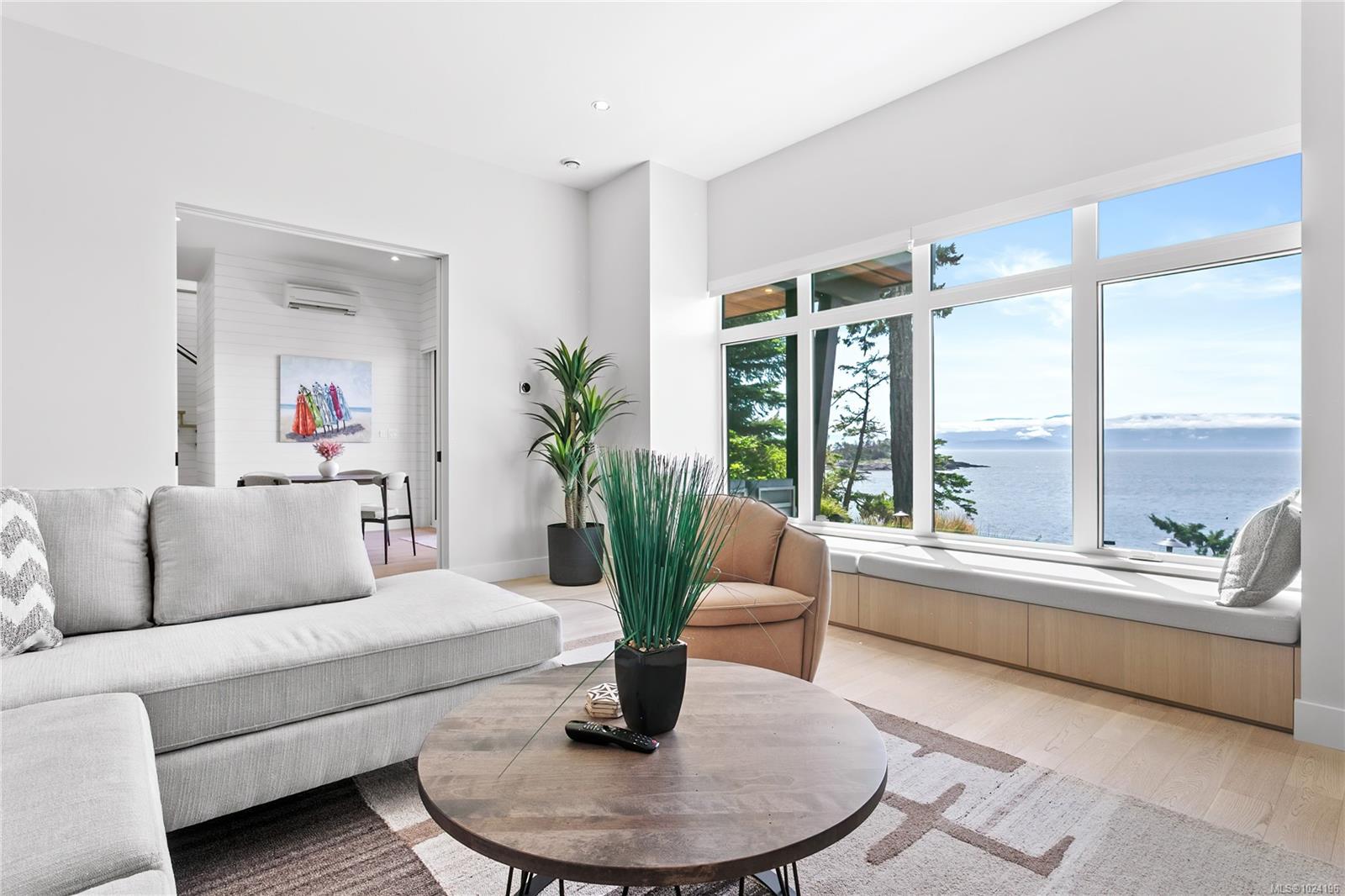 Experience unmatched coastal living in this west coast contemporary waterfront home along the stunning Juan de Fuca Strait. Completed in 2024, this 2,866 sq. ft. architectural residence features three spacious bedrooms, four bathrooms, and a versatile den perfect for a home office. Offered fully furnished (optional), it's one of only seven custom oceanfront homes in Sooke's first-of-its-kind luxury development. Interiors by Jenny Martin Design feature shiplap accents, panel-ready appliances, and refined millwork for ample storage. Enjoy an open-concept layout with ocean views, a designer kitchen, and fireplaces that add warmth and ambiance throughout. Dual laundry areas offer added convenience, while the advanced heating and cooling system provides individual climate zones. Whether as a full-time residence or a turn-key retreat, every detail is thoughtfully curated for coastal elegance and modern comfort.