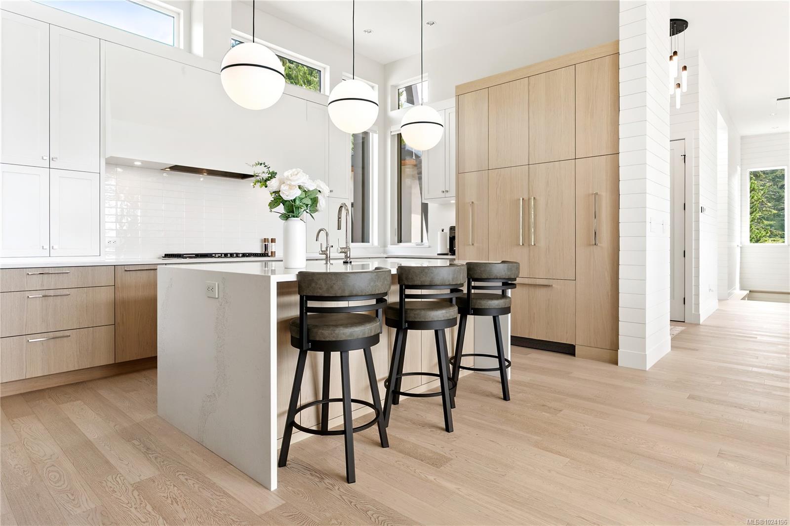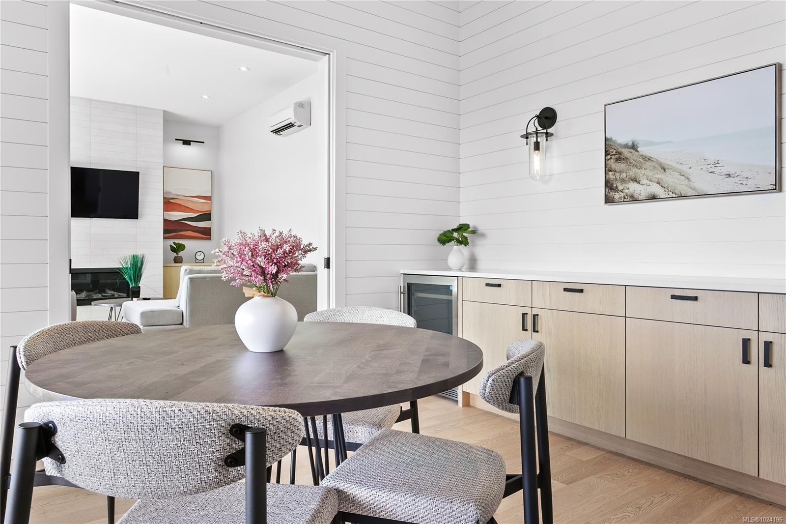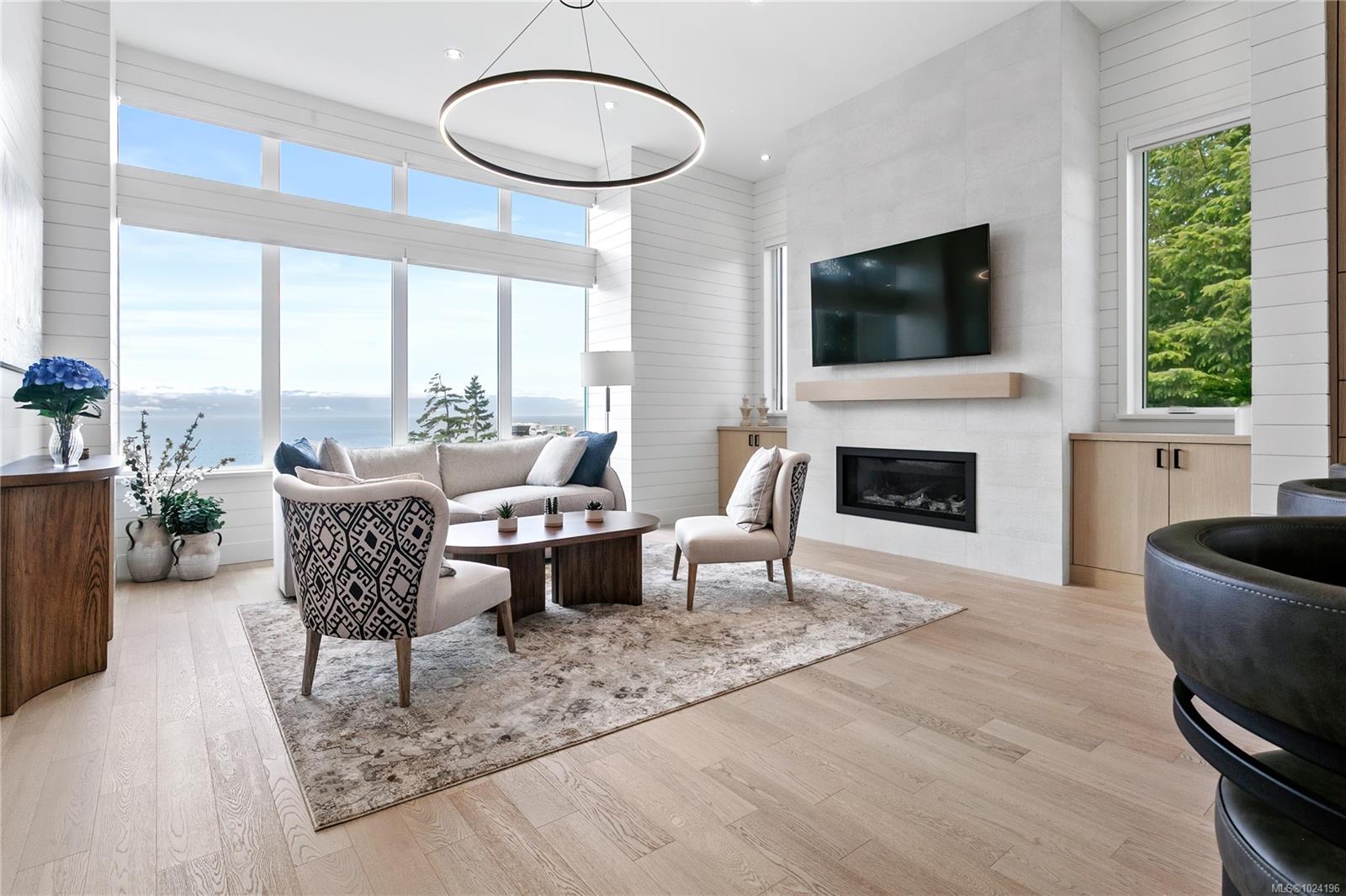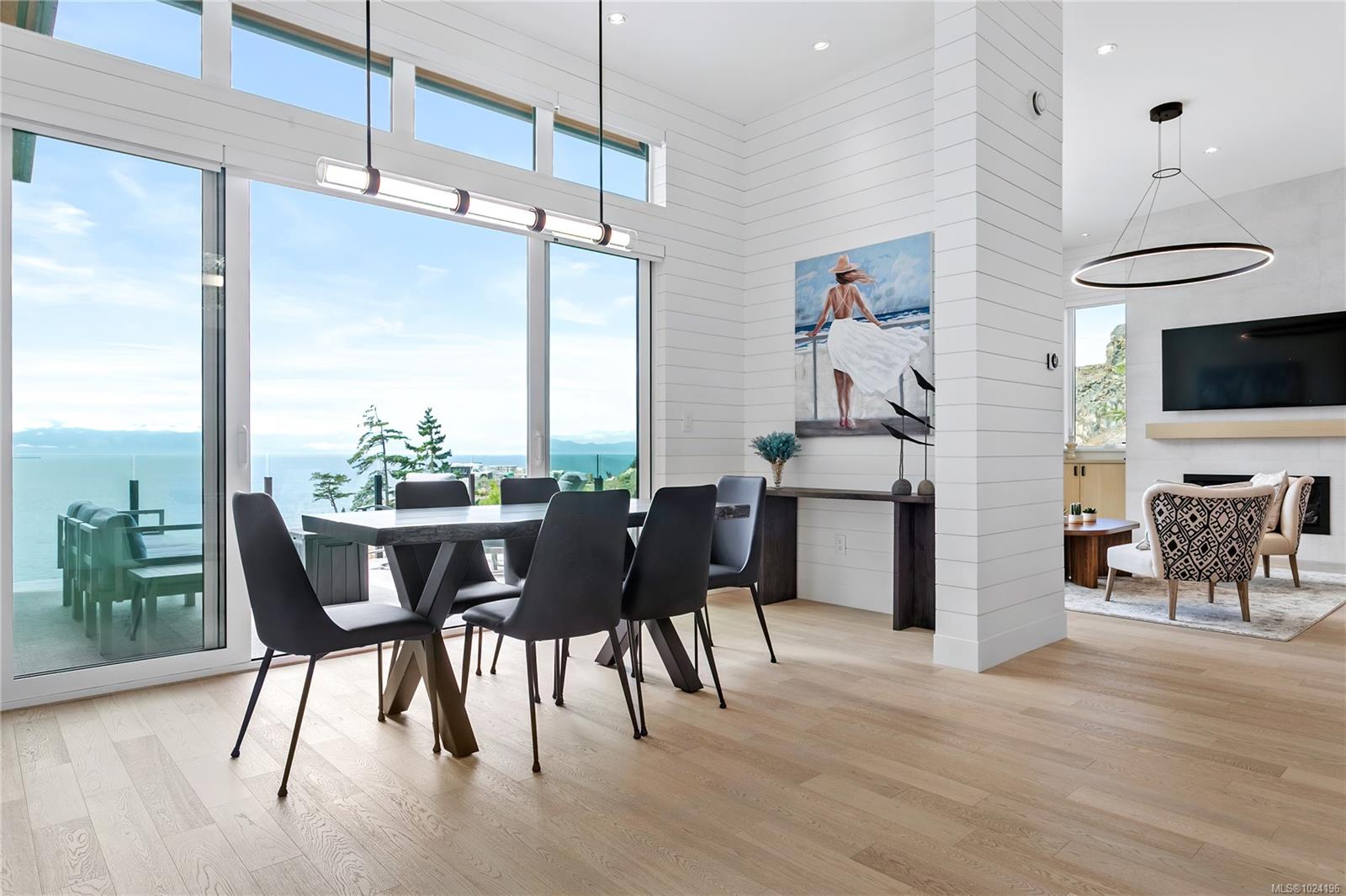 Experience unmatched coastal living in this west coast contemporary waterfront home along the stunning Juan de Fuca Strait. Completed in 2024, this 2,866 sq. ft. architectural residence features three spacious bedrooms, four bathrooms, and a versatile den perfect for a home office. Offered fully furnished (optional), it's one of only seven custom oceanfront homes in Sooke's first-of-its-kind luxury development. Interiors by Jenny Martin Design feature shiplap accents, panel-ready appliances, and refined millwork for ample storage. Enjoy an open-concept layout with ocean views, a designer kitchen, and fireplaces that add warmth and ambiance throughout. Dual laundry areas offer added convenience, while the advanced heating and cooling system provides individual climate zones. Whether as a full-time residence or a turn-key retreat, every detail is thoughtfully curated for coastal elegance and modern comfort.