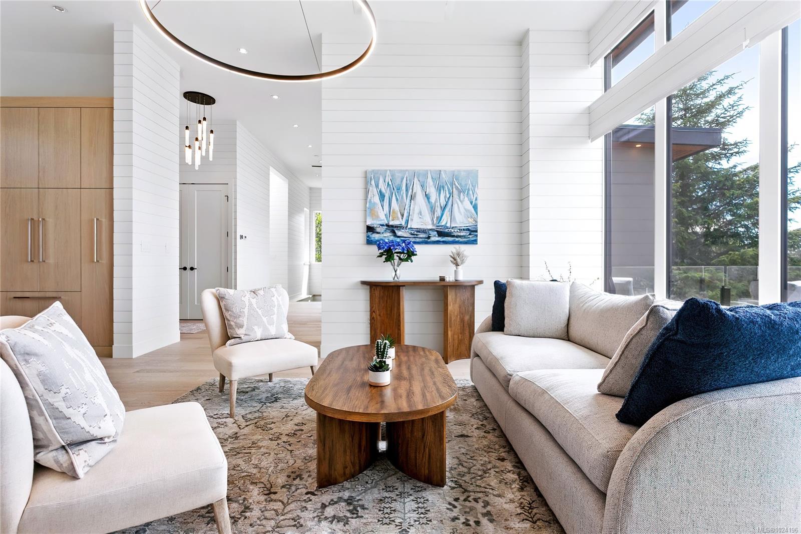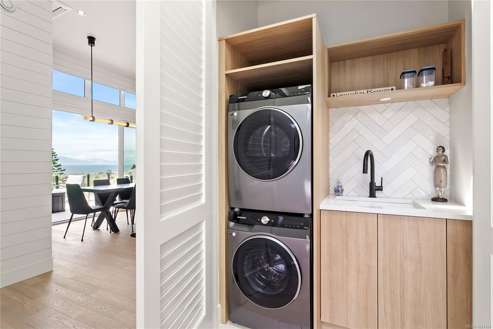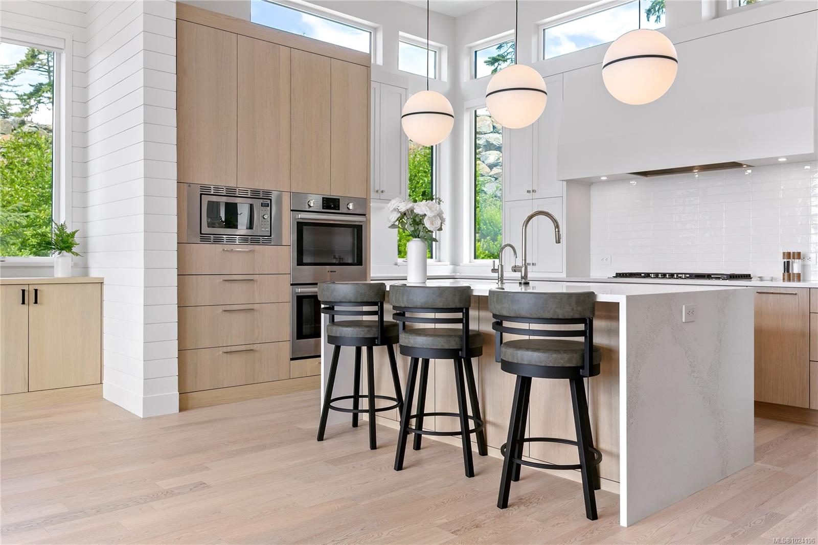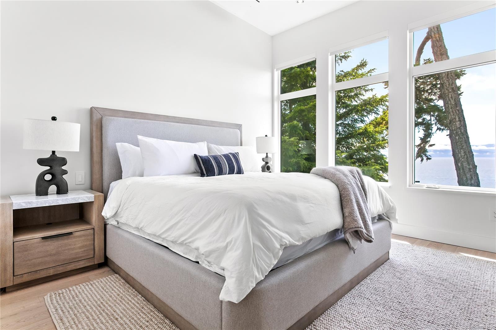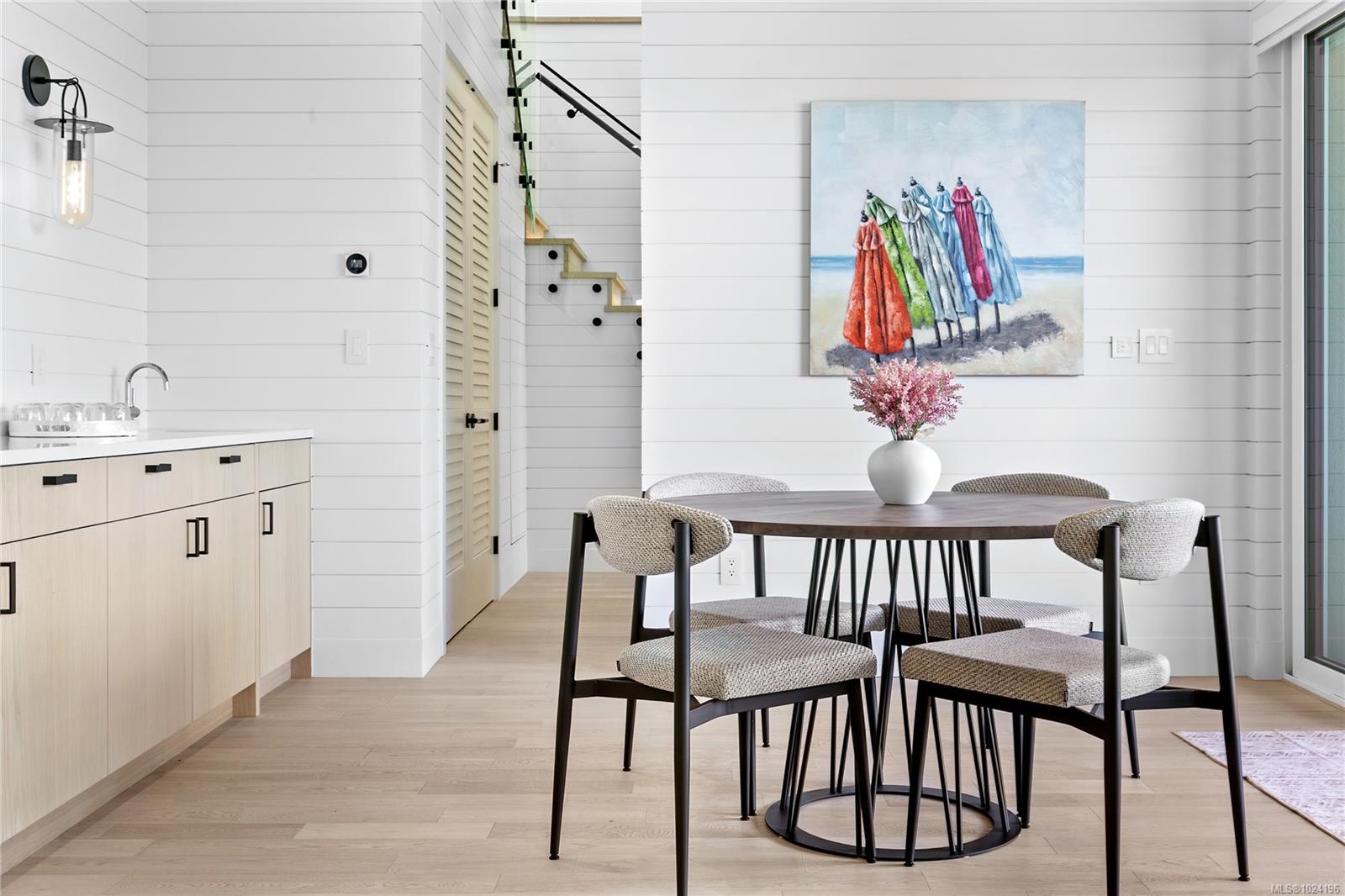 Experience unmatched coastal living in this west coast contemporary waterfront home along the stunning Juan de Fuca Strait. Completed in 2024, this 2,866 sq. ft. architectural residence features three spacious bedrooms, four bathrooms, and a versatile den perfect for a home office. Offered fully furnished (optional), it's one of only seven custom oceanfront homes in Sooke's first-of-its-kind luxury development. Interiors by Jenny Martin Design feature shiplap accents, panel-ready appliances, and refined millwork for ample storage. Enjoy an open-concept layout with ocean views, a designer kitchen, and fireplaces that add warmth and ambiance throughout. Dual laundry areas offer added convenience, while the advanced heating and cooling system provides individual climate zones. Whether as a full-time residence or a turn-key retreat, every detail is thoughtfully curated for coastal elegance and modern comfort.