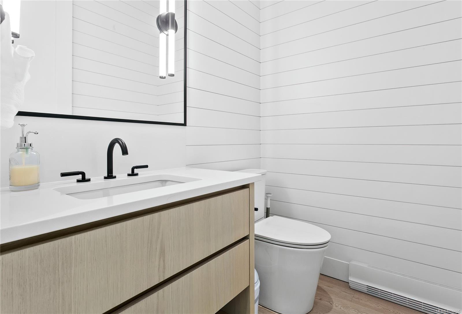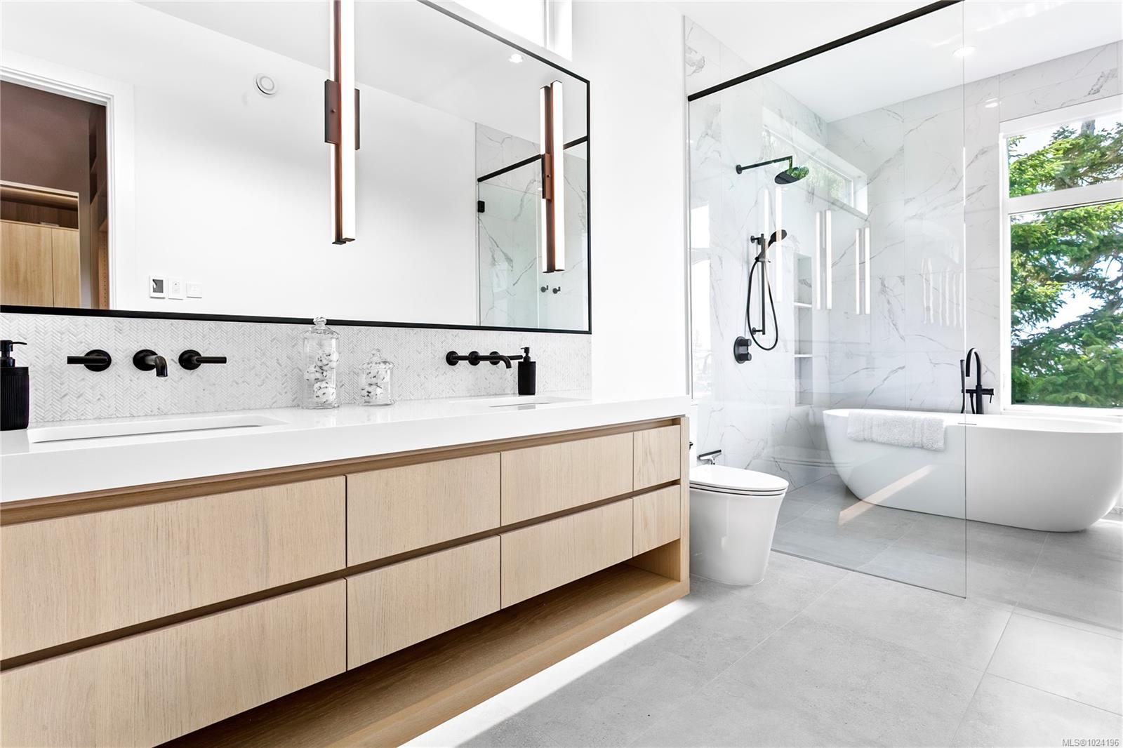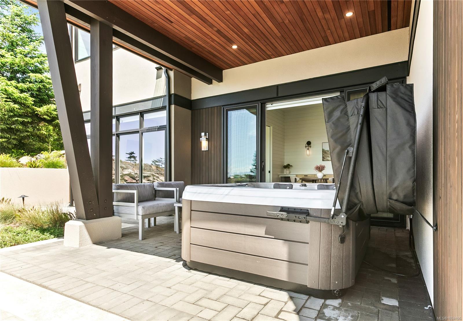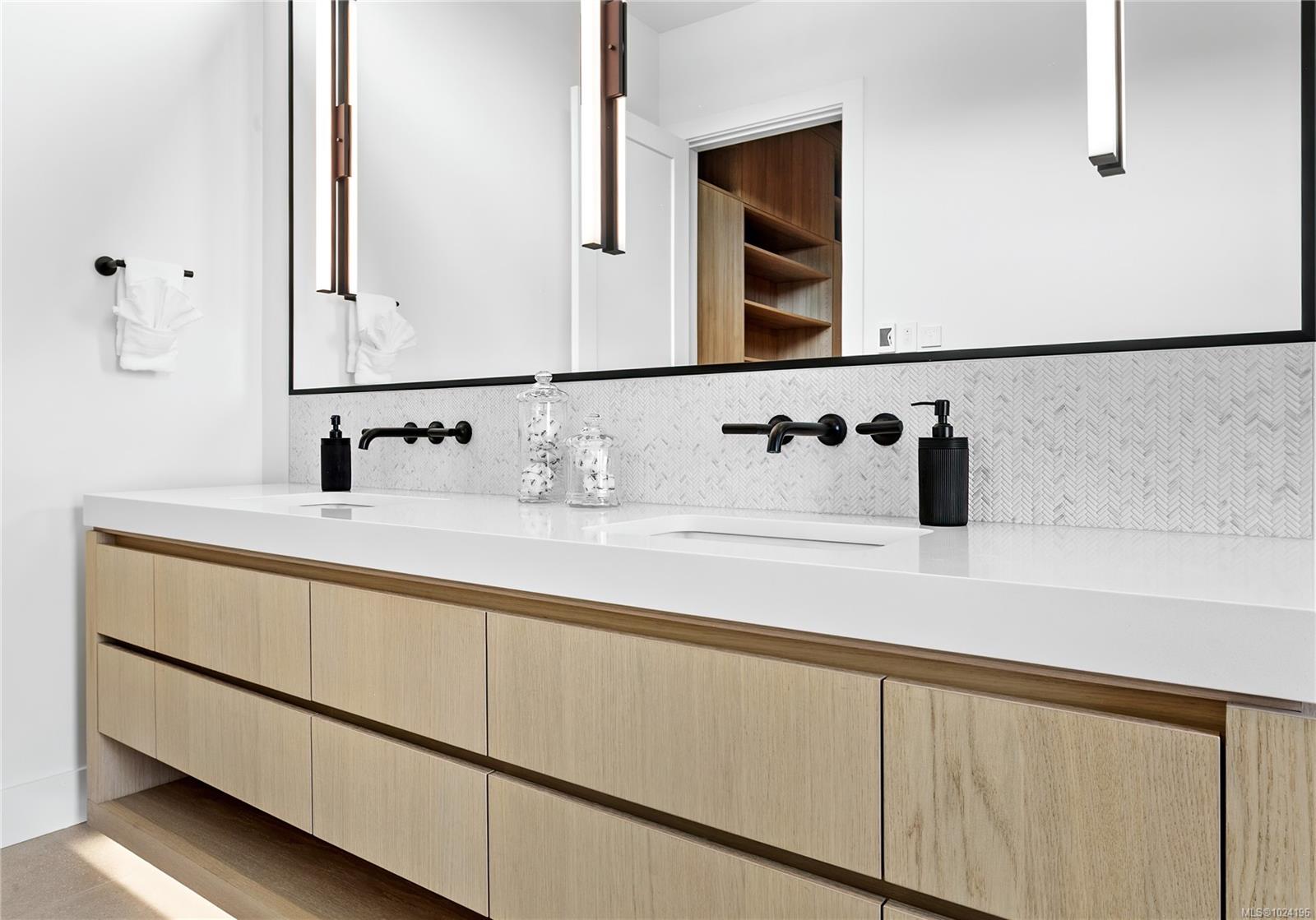 Experience unmatched coastal living in this west coast contemporary waterfront home along the stunning Juan de Fuca Strait. Completed in 2024, this 2,866 sq. ft. architectural residence features three spacious bedrooms, four bathrooms, and a versatile den perfect for a home office. Offered fully furnished (optional), it's one of only seven custom oceanfront homes in Sooke's first-of-its-kind luxury development. Interiors by Jenny Martin Design feature shiplap accents, panel-ready appliances, and refined millwork for ample storage. Enjoy an open-concept layout with ocean views, a designer kitchen, and fireplaces that add warmth and ambiance throughout. Dual laundry areas offer added convenience, while the advanced heating and cooling system provides individual climate zones. Whether as a full-time residence or a turn-key retreat, every detail is thoughtfully curated for coastal elegance and modern comfort.